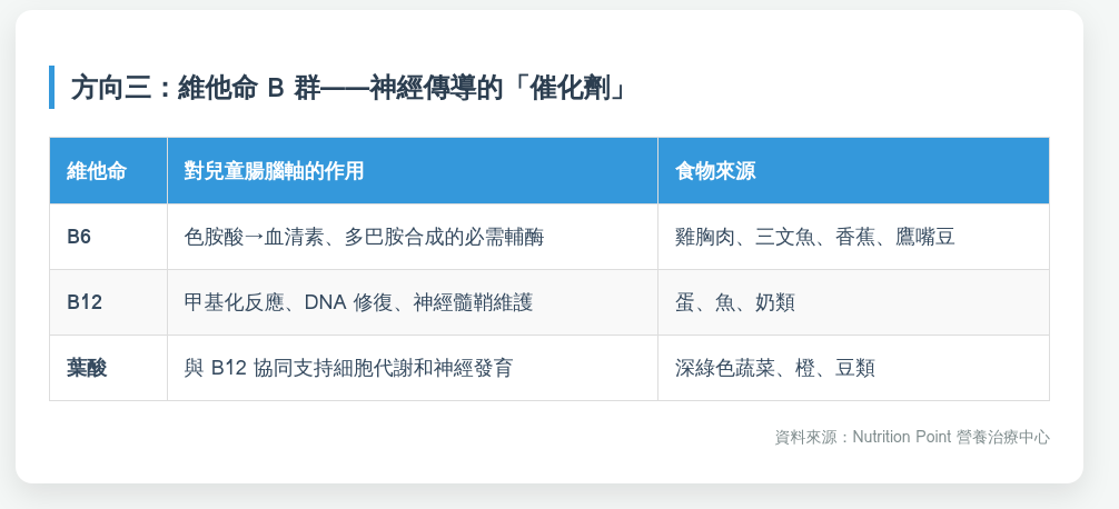 方向三:維他命 B 群——神經傳導的「催化劑」